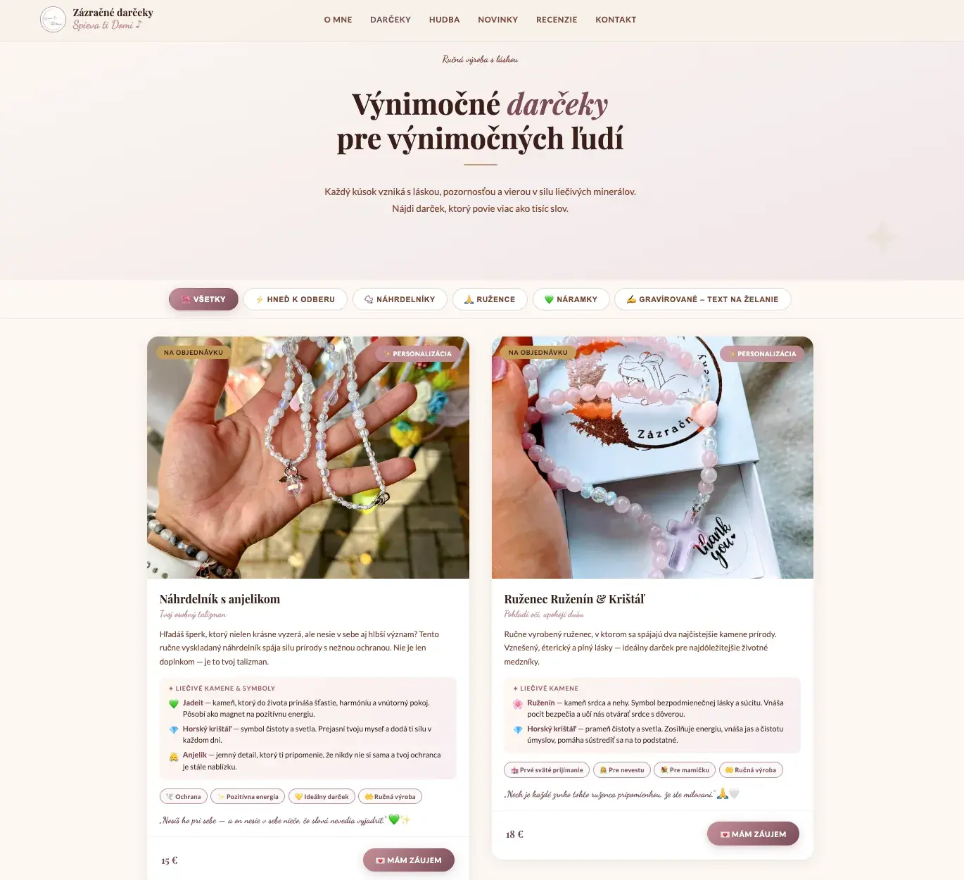 Originálne šperky a darčeky z liečivých minerálov, vyrobené s láskou.